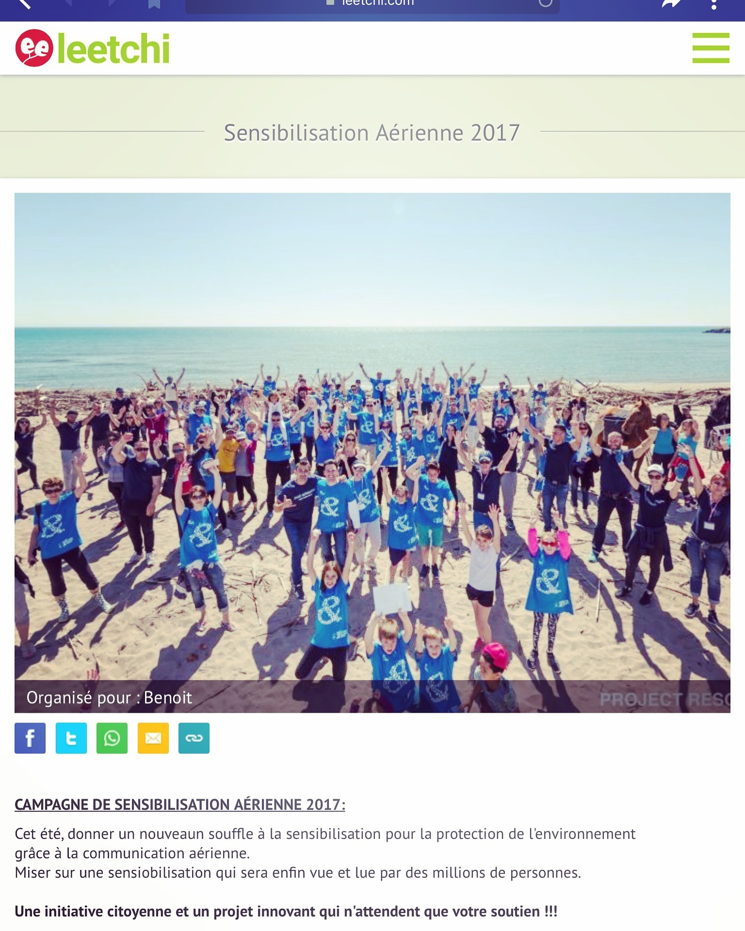 Bonjour je crée cette campagne de dons Leetchi, car comme vous le savez tous, nous sommes à un mois de l'été et depuis 2 ans sur mes jours de repos, je travaille sur une campagne de sensibilisation aérienne pour la protection des plages pendant le mois de Juillet et Aout 2017.