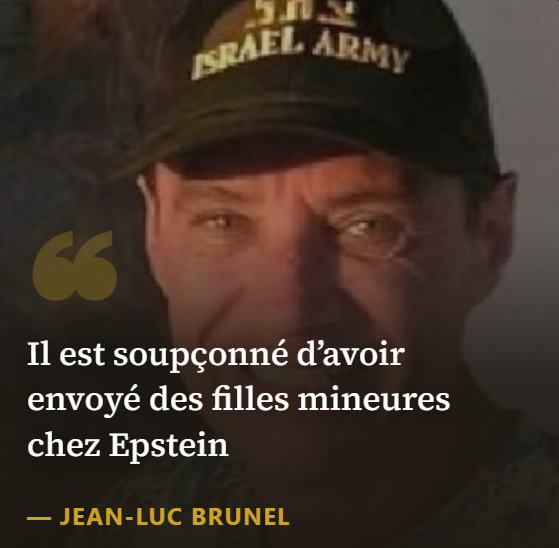 Virginia Giuffre, l'une des principales accusatrices d'Epstein, affirme dans des documents judiciaires de 2015 que le milliardaire s'était vanté d'avoir « couché avec plus de 1000 filles de Brunel ». Dans les documents récemment déclassifiés par le département de la Justice américain, le nom de Brunel apparaît régulièrement. Il y est décrit comme le « fournisseur » de jeunes filles mineures et majeures pour le réseau Epstein. Une victime anonyme l'aurait même qualifié d'être « cent fois pire que Ghislaine Maxwell ».