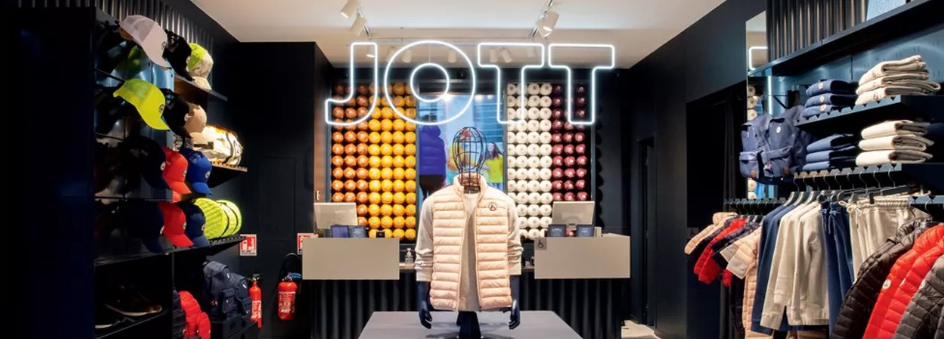 L'histoire de JOTT est celle d'une ascension fulgurante suivie d'une chute brutale. Fondée en 2010 par Nicolas et Mathieu Gourdikian à Marseille, la marque avait conquis le marché avec un concept novateur : des doudounes ultralégères, pliables et abordables. En janvier 2021, le fonds d'investissement L Catterton, lié à LVMH, rachète la majorité des parts via un LBO, avec l'ambition de transformer JOTT « d'une activité de grossiste à un véritable réseau de retail ». La marque ouvre alors près de 200 points de vente en France et en Europe.