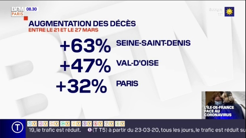 Le nombre de morts dans les Ehpad a augmenté de 820 par rapport à lundi. Une hausse "liée à un retard de saisie et au fait qu'on sort d'un weekend" a précisé le fonctionnaire.