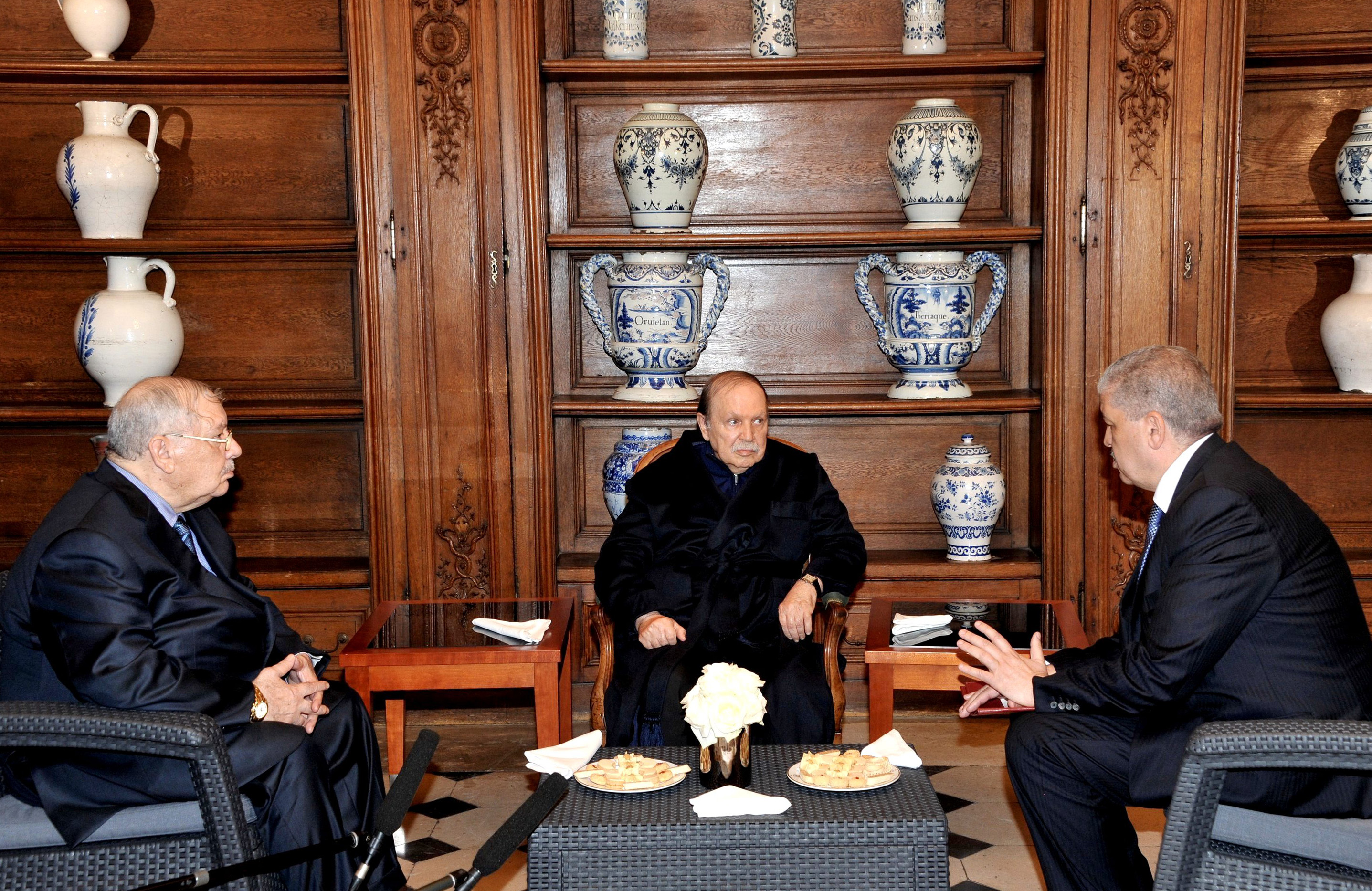 Des photos du président Abdelaziz Bouteflika sirotant un café en compagne du premier ministre et du chef d’état-major de l’ANP ont été diffusées mercredi 12 juin par l’APS, pour la première fois depuis 47 jours de convalescence suite à un accident vasculaire cérébral (AVC). Elles ont été largement reprises sur les sites internet des journaux locaux.