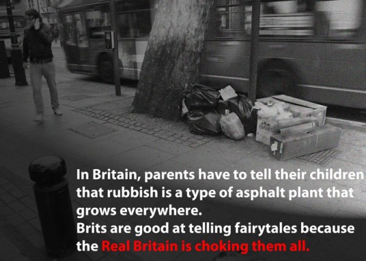 "En Grande-Bretagne, les parents doivent expliquer à leurs enfants que les ordures sont une plante d'asphalte qui pousse partout. Les Britanniques aiment raconter des contes de fées parce que la vraie Grande-Bretagne les révulse."
