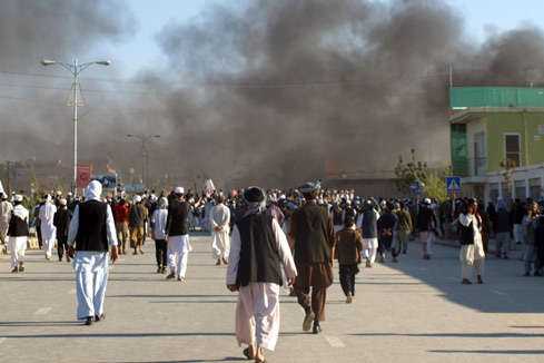 Cette attaque a eu lieu à la suite d'une manifestation contre l'autodafé récent d'un Coran par un pasteur en Floride, aux États- Unis.