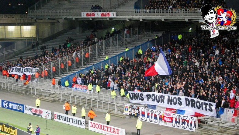 « De Lyon à Montpellier » et « Unis pour nos droits » : ce sont les deux banderoles qui ont été respectivement déployées hier au stade de Gerland par les Ultras de Montpellier et ceux du Virage Sud Lyon. Placés sur la même tribune, ils ont ainsi pu former une phrase à valeur de revendication.