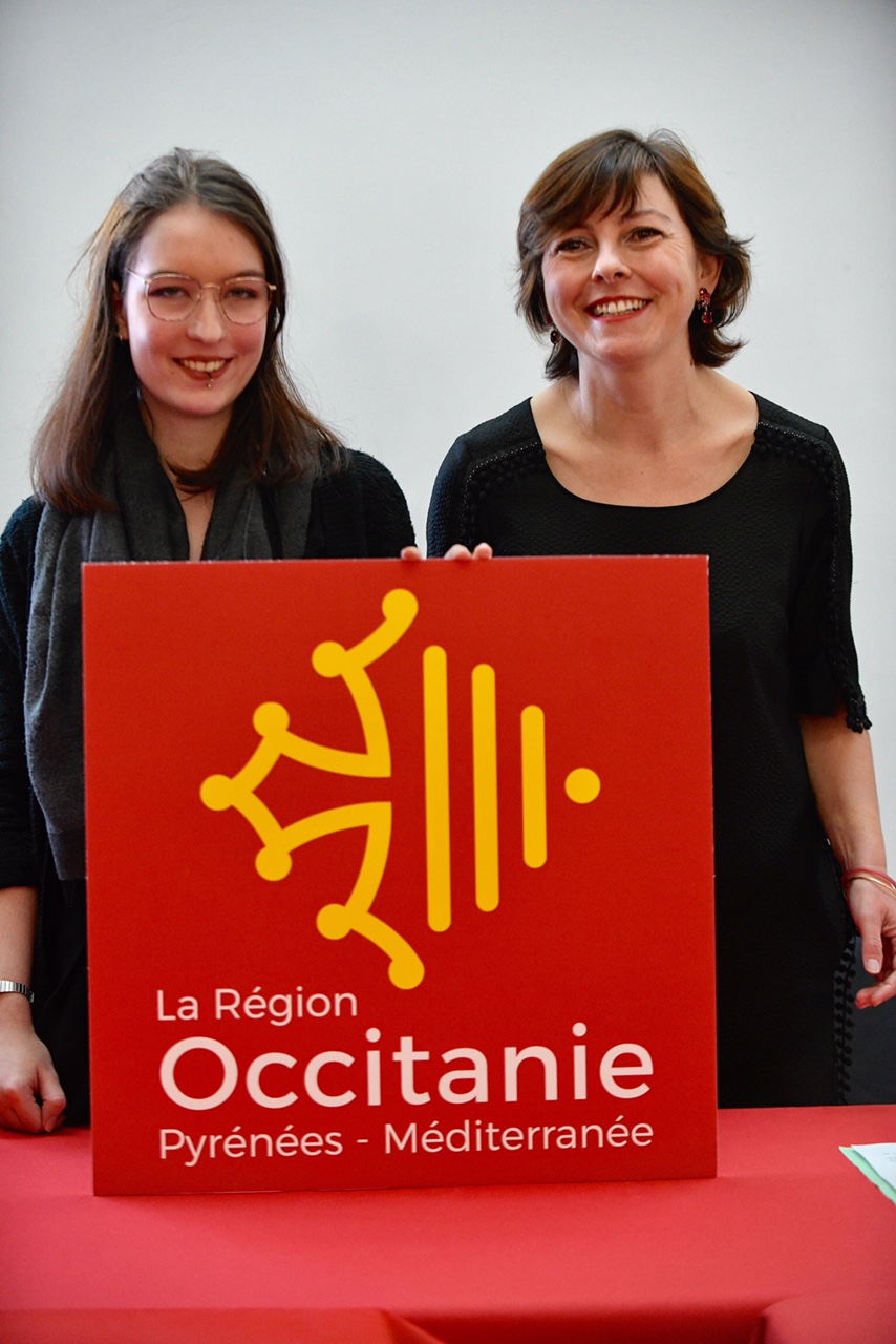 "Nous avons voulu ainsi démontrer la capacité d'innovation et d'initiatives de la jeunesse", lui adresser "un signal de confiance" envers sa "vitalité", sa "créativité" et "sa capacité à s'approprier l'avenir de sa région", a souligné Carole Delga lors du point presse, en félicitant chaleureusement Léa Filipowicz, la lauréate du concours : "Vous avez réussi à faire partager votre vision de logo de manière unanime", "vous incarnez la modernité".