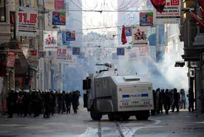La police turque a fait usage de lances à eau et de grenades lacrymogènes pour disperser des centaines de personnes venues manifester à Istanbul contre les assemblées annuelles du Fonds monétaire international (FMI) et de la Banque mondiale (BM) ouvertes mardi.
