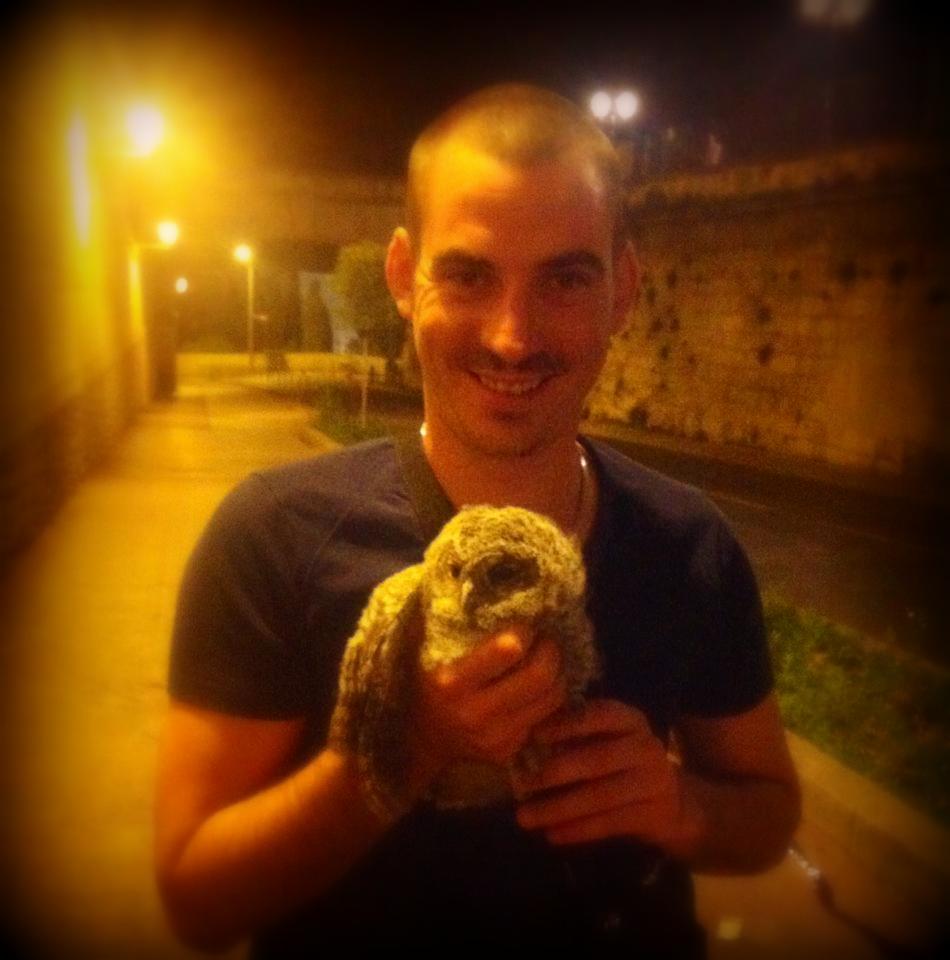 « En théorie, il ne fallait pas toucher ce bébé chouette, explique Jonathan Bulit, mais nous ne pouvions pas le laisser là, au milieu de la route, prêt à se faire écraser. Nous l'avons donc délicatement attrapé, sans trop le manipuler, pendant qu'au dessous de nous, la mère, une chouette Hulotte, poussait différents cris. Comme il était encore assez petit et qu'il n'était pas blessé, nous l'avons apporté derrière les grilles de la Maison des Relations Internationales afin qu'il soit en sécurité et protégé du milieu urbain, avec l'espoir que sa mère vienne le récupérer ».