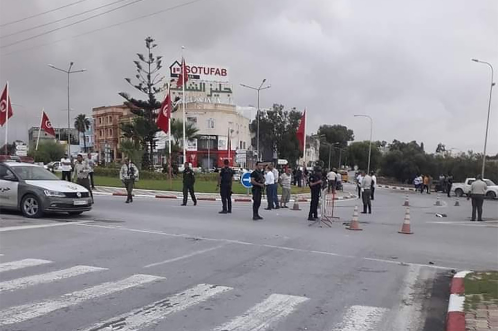 Après l'attaque au couteau, les forces de sécurité ont poursuivi les assaillants qui ont emporté les armes et le véhicule des officiers dans le quartier d'Akouda, dans la zone touristique d'El-Kantaoui, a déclaré Jebabli.