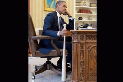 Après son entretien téléphonique lundi avec le premier ministre turc, Recep Tayyip Erdogan, au sujet de la situation en Syrie, la Maison-Blanche a diffusé un cliché de leur échange. On y voit Barack Obama tenir dans sa main une batte de base-ball, dédicacée par le joueur américain Hank Aaron.