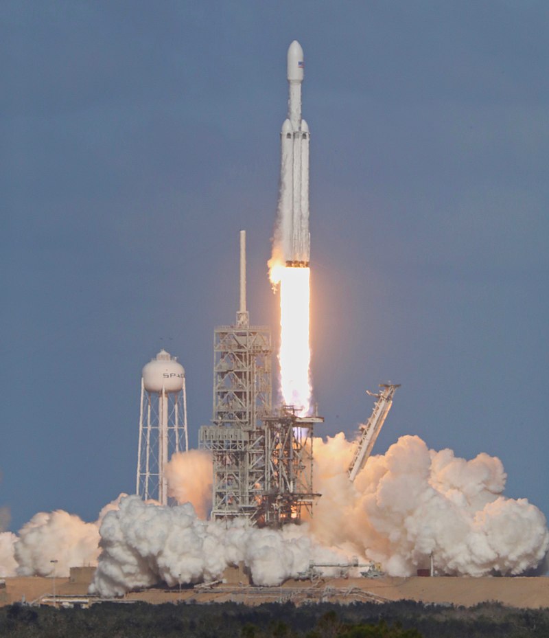 Falcon Heavy est un lanceur lourd développé par la société SpaceX ayant la capacité de placer une charge utile de 63,8 tonnes en orbite basse ou de 26,7 tonnes en orbite de transfert géostationnaire. Un test d'allumage statique a été effectué le 24 janvier 2018 avec succès.