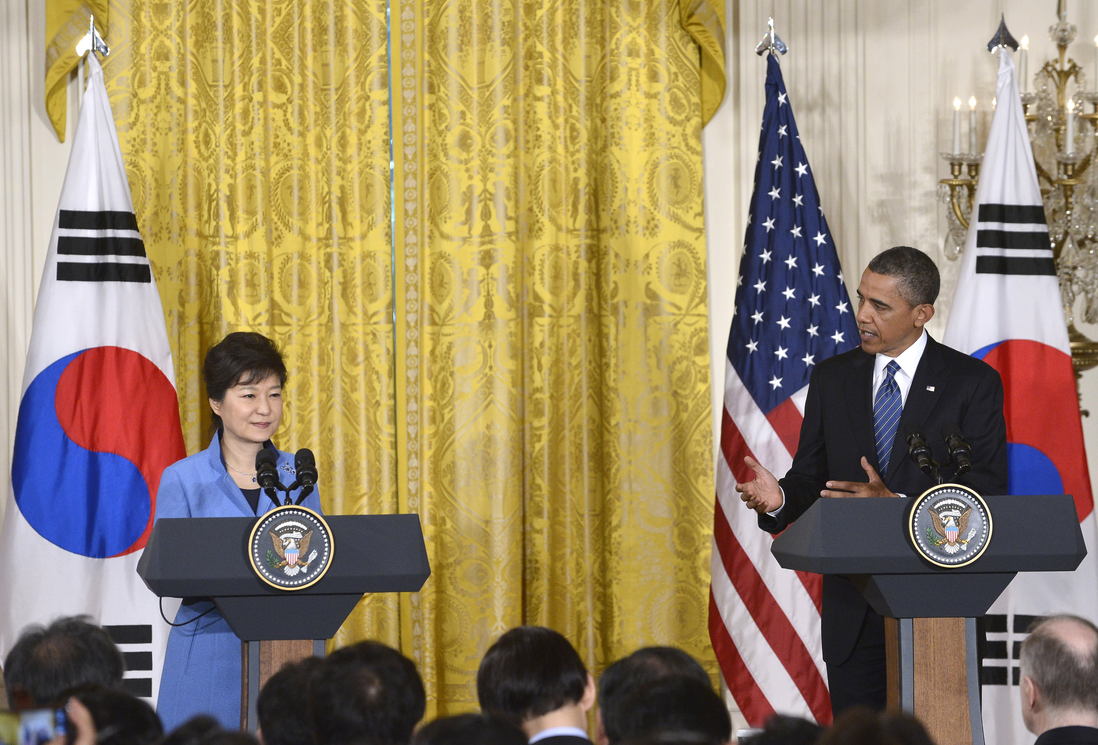 Lors d'une conférence de presse conjointe avec la présidente sud-coréenne Park Geun-hye, à l'issue de leur entretien à la Maison Blanche, M. Obama a indiqué qu'il existait des preuves de l'utilisation d'armes chimiques en Syrie.