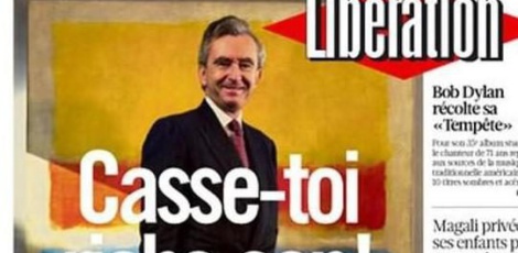 La première page de Libération montre une photo du milliardaire, souriant, valise à la main, accompagnée du titre «Casse-toi riche con!». Elle fait allusion à des propos tenus par l'ancien président Nicolas Sarkozy en 2008 au Salon de l'agriculture ("Casse-toi, pauvre con!").