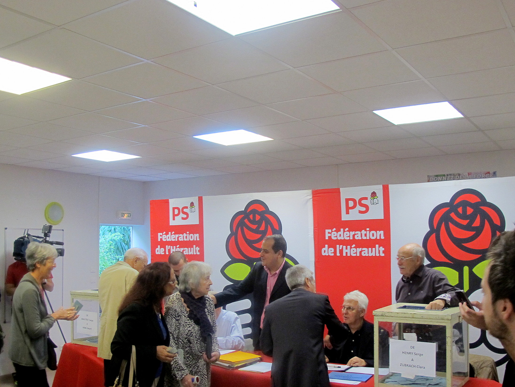 Ce matin, c'est Jean-Pierre Moure, qui a été le premier des candidats à venir voter au siège de la fédération PS. Il est arrivé « très serein » peu après 10h30, au QG de Saint Maur, où ses soutiens présents en masse l'attendaient, tandis que de nombreux militants du PS se pressaient dans les files, pour accomplir leur doit de vote.