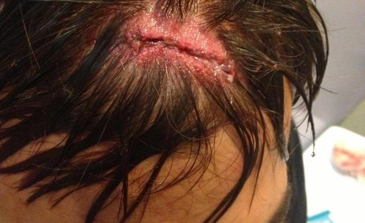 Quand ces policiers assoiffés de violence furent enfin rassasiés et qu’ils nous observaient sourire aux lèvres nous avons commencé à nous occuper des blessés (plusieurs cranes et faces ouvertes). Les deux plus sérieusement touchées (ouverture du cuir chevelu et bras cassé) ont été conduits vers un centre médical non loin du stade où l’un ne fut pas soigné et l’autre racketté.