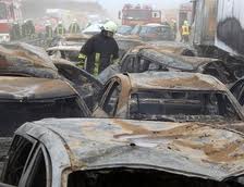 Cet accident est dû à une très forte tempête de sable qui a réduit la visibilité à moins de 100 mètres sur l'autoroute en noyant les pare-brise sous des bourrasques de sable.