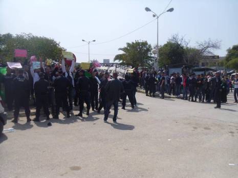 La police de Bouteflika épaulée par des nervis à la solde du pouvoir continuer à piétiner le droit à l’expression, dressant un barrage à la marche de jeunes étudiants et chômeurs rassemblés dans la ville universitaire de Boumerdès pour dénoncer la mascarade du 4ème mandat.