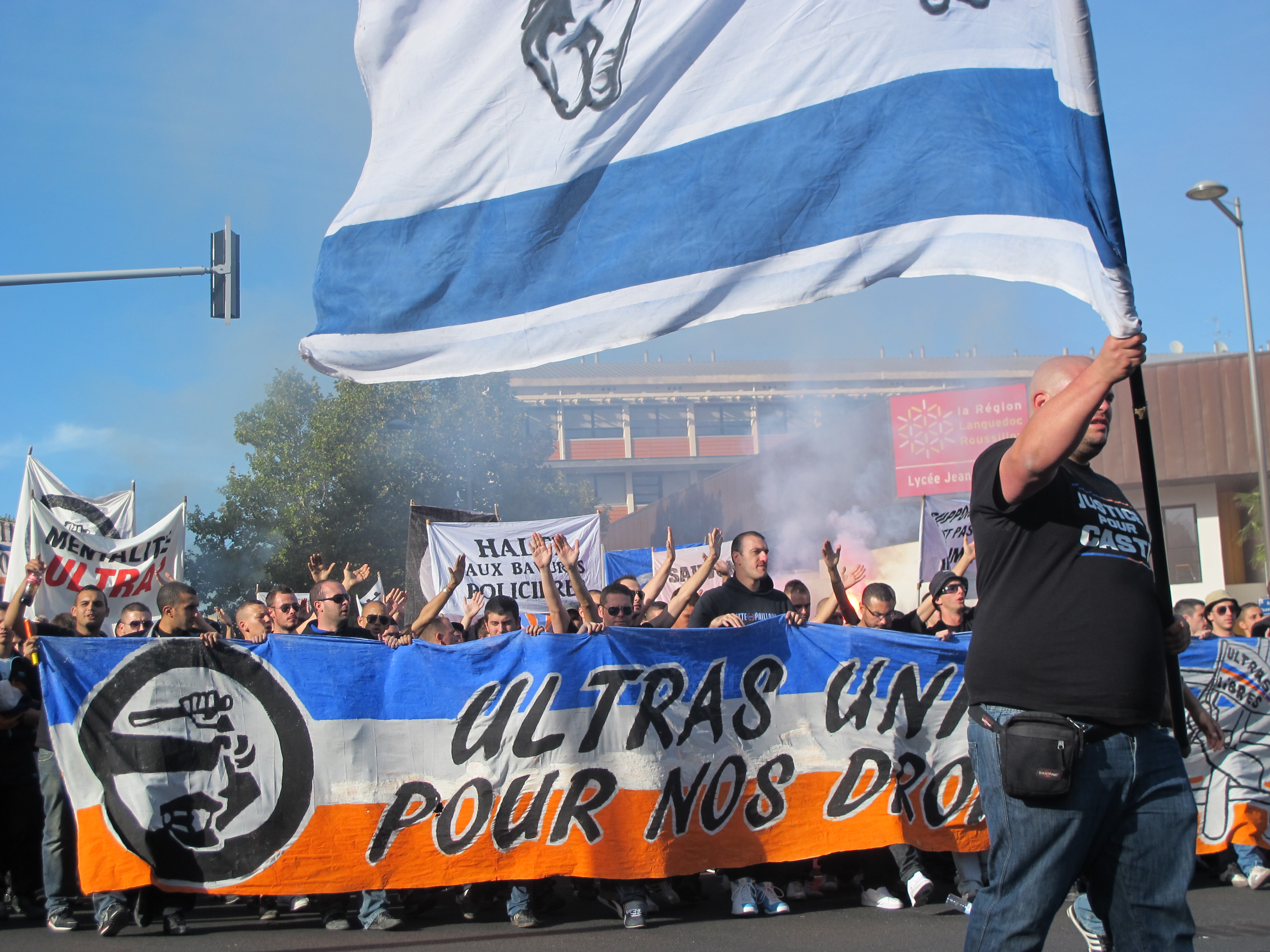 Plus de 1500 supporters de clubs Ultras venus de toute la France, mais aussi de Suisse ou d'Italie, ont longuement manifesté aujourd'hui dans les rues de Montpellier, de la place royale du Peyrou, jusqu'à la Place de l'Europe.