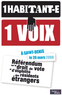 L'extension de cette citoyenneté a déjà eu lieu pour une partie des étrangers résidents, ressortissants de l'Union européenne (UE), qui peuvent voter aux élections municipales et européennes. "Il s'agit maintenant de donner les mêmes droits à tous les étrangers résidents"en France, affirme-t-on.