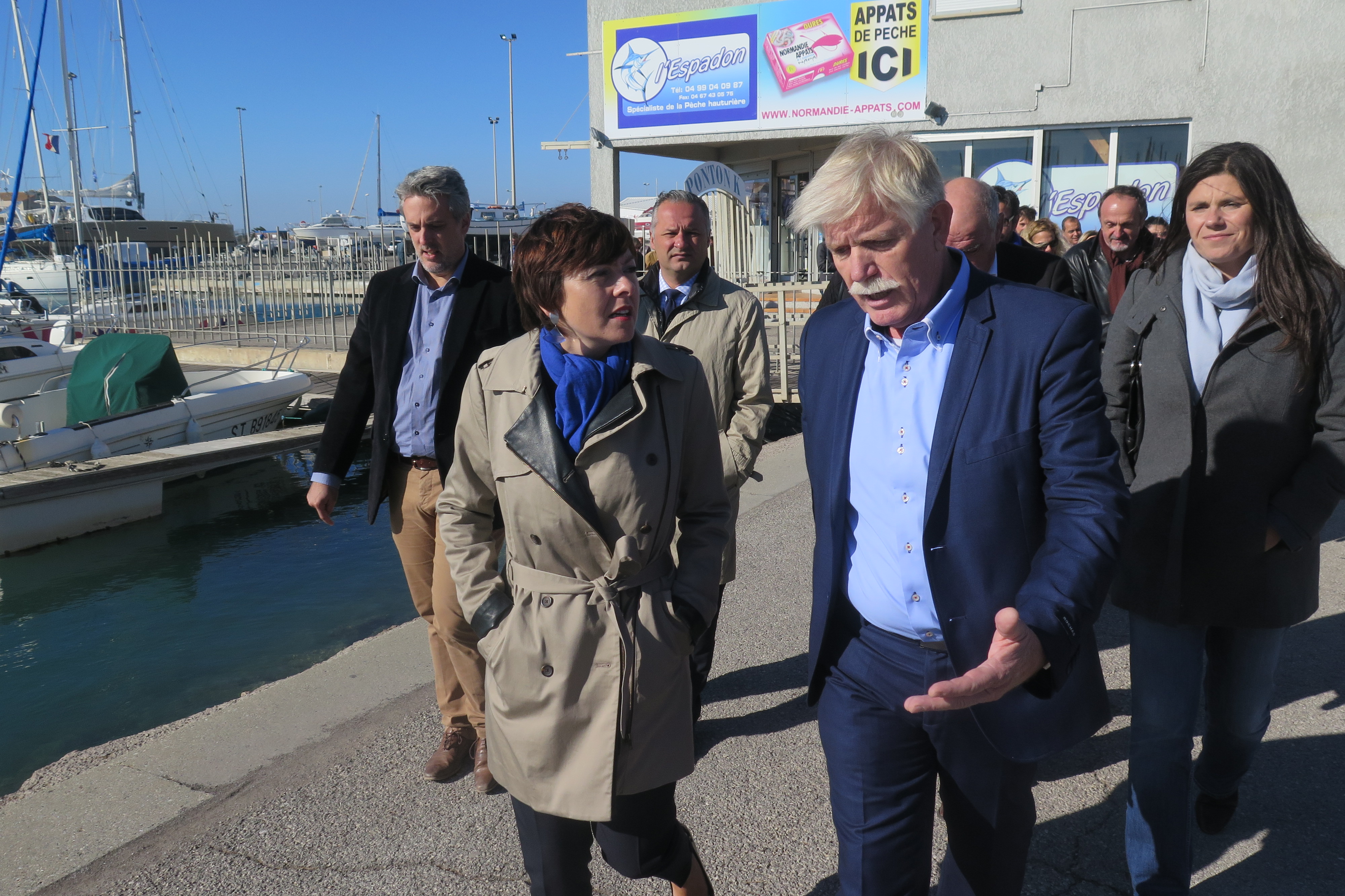Après une réunion de travail sur le Port de Sète, Carole Delga a visité le Port de plaisance de Frontignan avant de partir à la rencontre des conchyliculteurs à Mèze et de revenir vers les professionnels de la pêche dans l’Île Singulière. Le tout entourée de plusieurs représentants de sa liste héraultaise, à savoir Virginie Rozière (PRG), qui sera la tête de liste dans ce département, mais aussi les socialistes Hussein Bourgi, André Lubrano et Loïc Linarès. A leurs côtés, de nombreux élus locaux, avec bien évidemment les maires de Frontignan et de Mireval, Pierre Bouldoire et Christophe Durand, ainsi que les députés Sebastien Denaja et Christian Assaf.