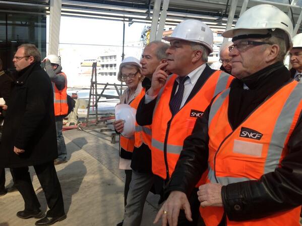 Accueilli dès hier soir à l'aéroport de Montpellier Méditerranée par Jean-Pierre Moure, le président de Montpellier Agglomération, en campagne pour la candidature à la candidature socialiste à l'élection municipale de Montpellier en 2014, Frédéric Cuvillier était aussi entouré de tous les autres élus socialistes qui comptent, dans les rues de la capitale du Languedoc-Roussillon, sous le soleil de midi. Parmi lesquels : Hélène Mandroux, le maire de Montpellier, candidate à sa propre succession ; Christian Bourquin, le président de Région, qui ne dirait pas non, non plus, au fauteuil de maire ; et André Vézinhet, le président du Conseil général de l'Hérault, toujours sur la brêche. Tous l'ont accompagné de la préfecture de l'Hérault jusqu'à la gare Saint-Roch de Montpellier, dont le chantier de réhabilitation actuellement en cours, préfigure le projet complémentaire de gare nouvelle de Montpellier-Odysseum.