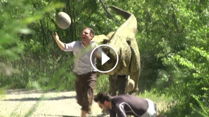 Regardez la réaction du joggeur effrayé, ça vaut le détour, on se croirait dans Jurassic Park !