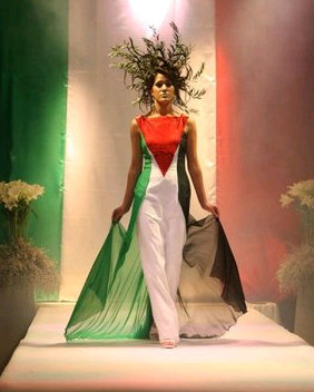Le plus grand succès a été remporté par la robe de couleur rouge et d'or perlée inspirée des tenues traditionnelles. Le mannequin qui la portait tenait dans ses mains un magnifique bouquet de rameaux d'olivier, arbre symbole de l'État palestinien.