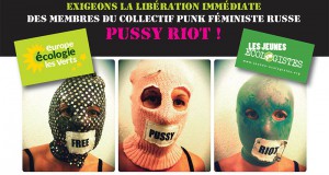 A Montpellier comme ailleurs, tous ces manifestants (cagoulés ou pas) demanderont la libération immédiate des membres de Pussy Riot, un groupe de punk féministe russe, en proie avec la justice de son État, depuis son concours à une prière punk intitulée « Sainte Vierge chasse Poutine » qui avait résonné dans la Cathédrale du Christ Sauveur, à Moscou.
