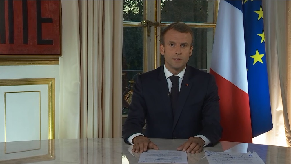 Une allocution pré-enregistrée et diffusée sur toutes les chaînes télé, sans journalistes pour poser des questions, dans la plus pure tradition des allocutions élyséennes, quand la France, son président, s’adresse directement aux Français, pour un 14 juillet ou pour tout autre grand évènement majeur. La voici :