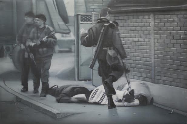 .-Ce travail sur la mémoire qui visiblement produit des oeuvres spécifiques, d'un après guerre compliqué car des institutions du pays sont empêches de faire l'histoire, de rendre justice, de concilier des mémoires et construire un futur partagé, oblige des artistes à la participation. Il s'agit de proposer les nouvelles perceptions du réel en explorant ce qui le creuse : sa mémoire, ses images rémanentes, son refoulé. Les activités de mémoire que l'exposition veut donner à voir procèdent d'une singularité collective, d'une soorte de réalisme mosaïque. Les oeuvres rassemblées ne sont pas des jugements, ni des monuments aux morts, ni des discours mémoriels...