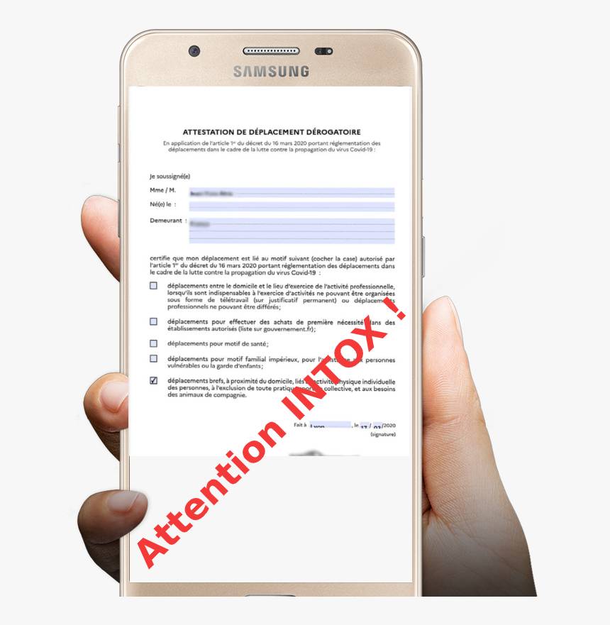 Cette attestation sur l'honneur est indispensable si vous désirez sortir de chez vous et doit être absolument remplie sur support papier. Toute attestation présentée sur un smartphone ne sera pas valide et vous risquez d'encourir une amende de 138 €.