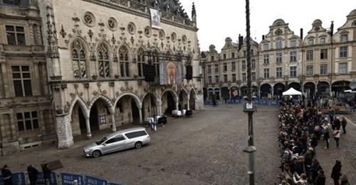 La place des Héros à Arras est chargée d'émotions à l'arrivée du corbillard. Les personnes présentes semblent encore sous le choc des événements qui ont eu lieu le vendredi 13 octobre.