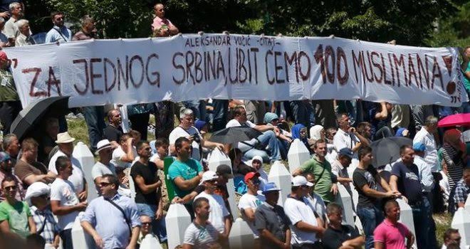 Ce même homme qui fait mine de tendre une main amicale aux survivants du massacre, qu'il se garde bien de nommer génocide, avait bel et bien déclaré en 1995 au même endroit :"Pour chaque Serbe tué,  nous exécuterons 100 musulmans bosniaques".