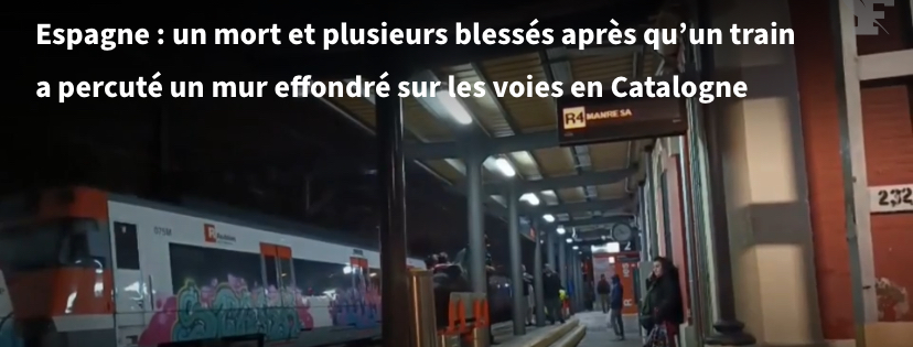 Un train de banlieue a percuté mardi soir un mur de soutènement effondré sur les voies près de Barcelone, faisant un mort et 37 blessés. Cet accident survient deux jours seulement après la catastrophe ferroviaire d Adamuz qui a coûté la vie à 42 personnes dans le sud de l Espagne.