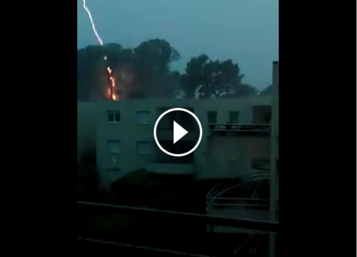 Des dires mêmes des chasseurs d'orages de Météo Languedoc, cette vidéo filmée par Lisa Deleu de son balcon est pour le moins « inédite » et « exceptionnelle », la foudre qui s'abat « à quelques dizaines de mètres sur un arbre » est « extrêmement virulente et très surprenante », regardez :