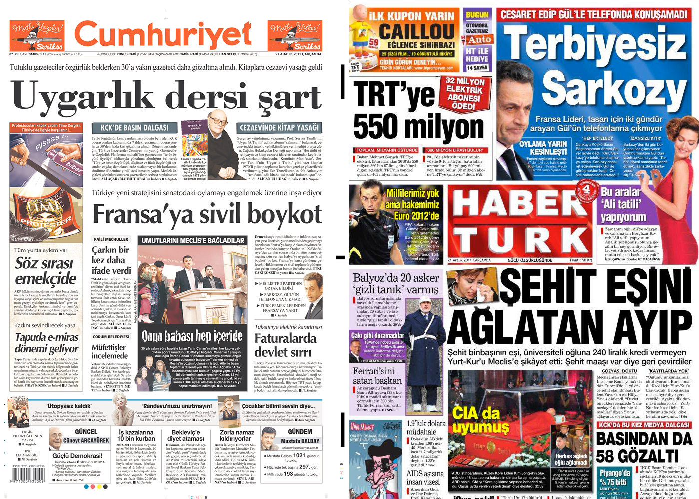 Habituellement opposés, le très laïque Cumhuriyet et l'islamo-conservateur Zaman unissaient leurs voix pour dénoncer respectivement "la justice à la française" et "une honte historique".