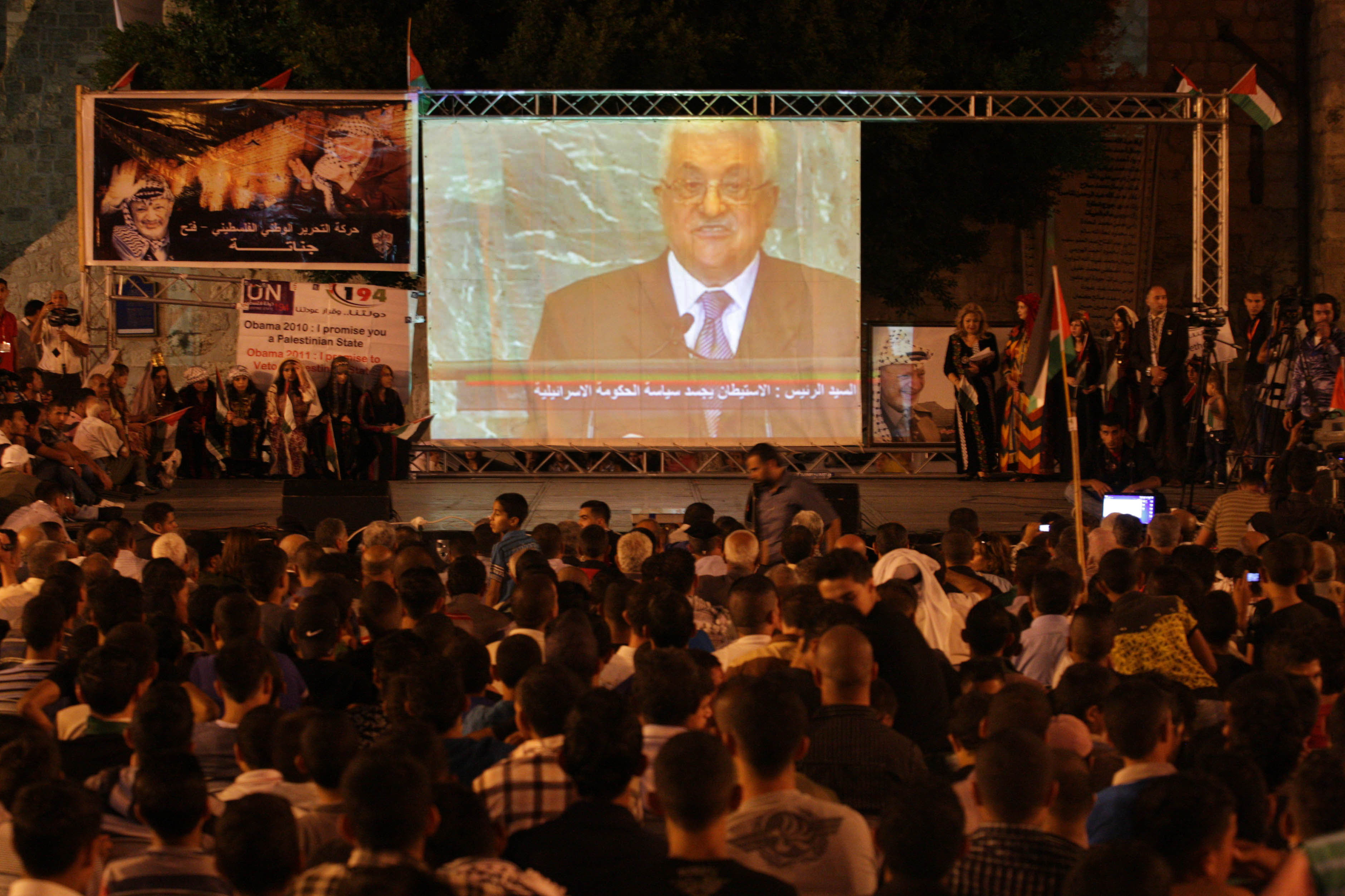 Dans son discours, le président de l'Autorité palestinienne a dénoncé la politique de colonies de peuplement d'Israël, affirmant qu'elle était « la principale cause de l'échec du processus de paix ». « Les activités de colonisation incarnent le coeur de la politique d'occupation militaire coloniale de la terre du peuple palestinien et de la brutalité de l'agression et de la discrimination raciale contre notre peuple que cette politique comporte », a-t-il ajouté.