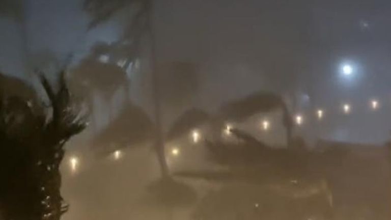 Les rafales de vent destructrices ont balayé les palmiers et les halls d'hôtel, réveillant les touristes en pleine nuit. Du haut des chambres, on peut observer des arbres abattus, arrachés et des véhicules submergés.