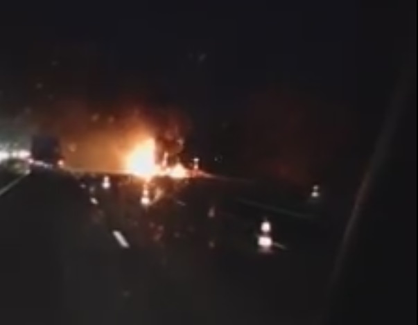 Un internaute a filmé le poids-lourd en feu à 7h21 et diffusé sa vidéo sur Facebook :