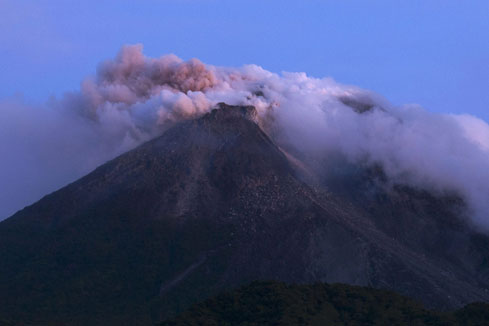 La dernière éruption du mont Merapi s'est produite en 2006. Deux personnes avaient alors péri dans l'avalanche de gaz bulleux et de fragments de roches qui s'étaient écoulé sur les versants de la montagne.