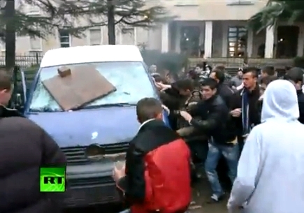 Les manifestants ont à leur tour lancé des pierres et incendié des voitures. Un autre groupe de manifestants pacifiques, dont le nombre est estimé à 20.000 personnes, a cependant continué à défiler sur le boulevard principal de Tirana.