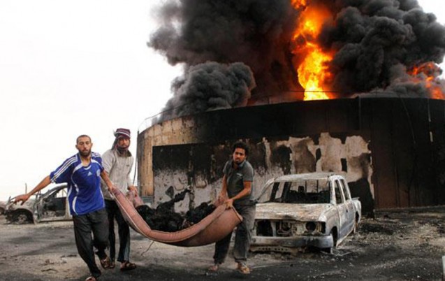 Cet incendie colossal aurait été provoqué par des tirs de roquettes depuis la route. Le pays est ainsi littéralement à feu et à sang depuis la chute de Khadafi et son assassinat par des miliciens.