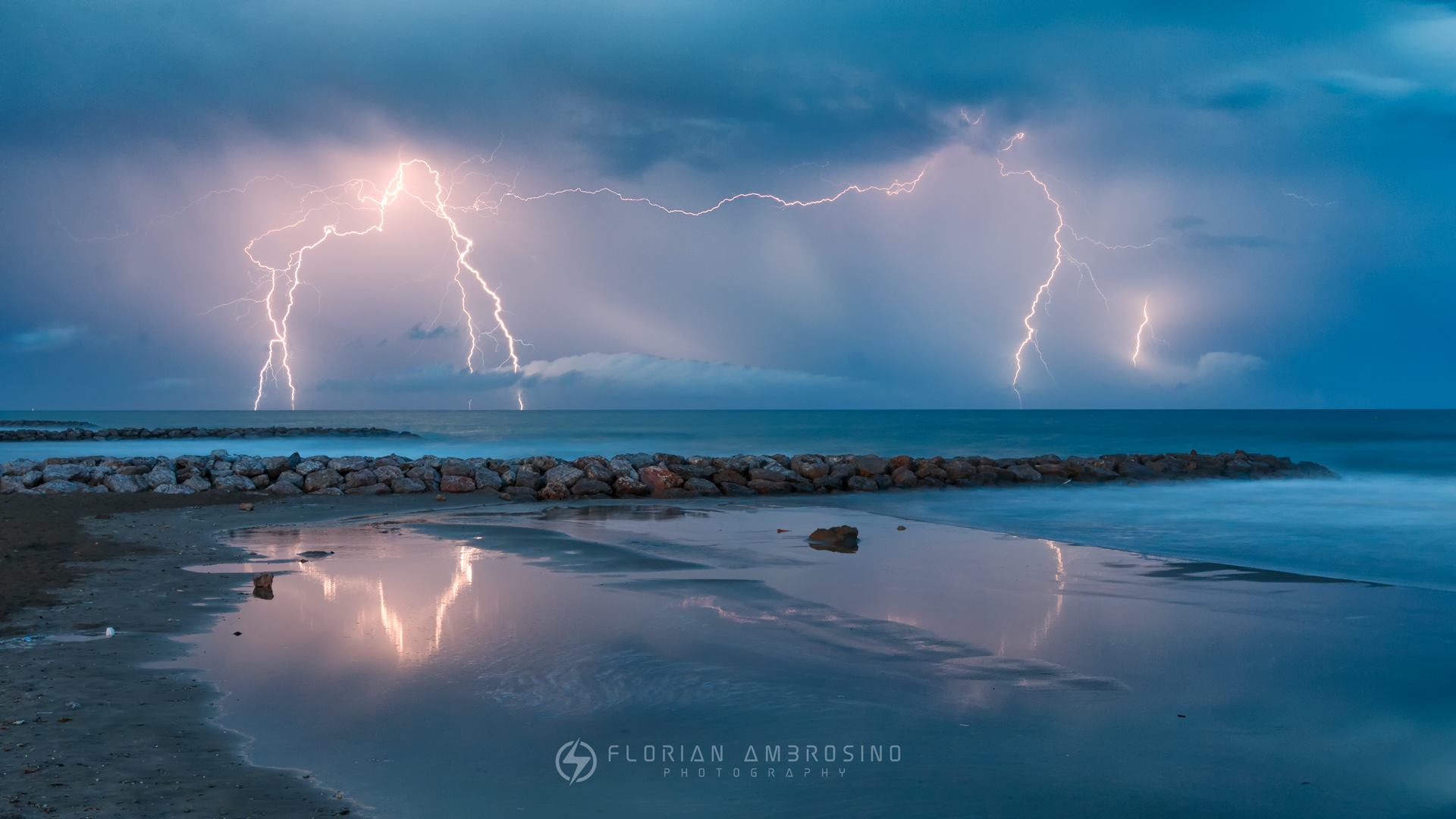 « Je me trouvais à l'arrière d'un système orageux bien organisé qui porte le nom barbare de "quasi-linear convective system". Ce genre d'orage est très vaste et puissant. On peut souvent observer un arcus (nuage en rouleau) à l'avant accompagné d'un front de rafale de vent. Les conditions de prise de vue sont très difficiles à l'avant et sous ce type d'orage car c'est extrêmement pluvieux. J'ai donc attendu le passage de l'orage et je me suis positionné à Frontignan-Plage. Par chance, le ciel était dégagé à l'arrière, ce qui m'a permis de tranquillement regarder l'orage s'éloigner vers l'Est, en direction de La Grande-Motte, du Grau-du-Roi et de l'Est des Bouches-du-Rhône avec de très nombreux impacts de foudre. »