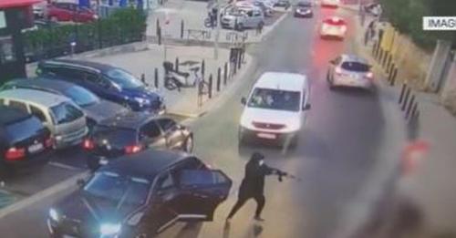 Sur les images de vidéosurveillance, trois hommes sont vus en train de discuter sur un trottoir près d'un bar tabac. Un 4x4 noir s'est arrêté à leur hauteur, et un passager en est sorti pour tirer en rafale à l'aide d'une arme longue.