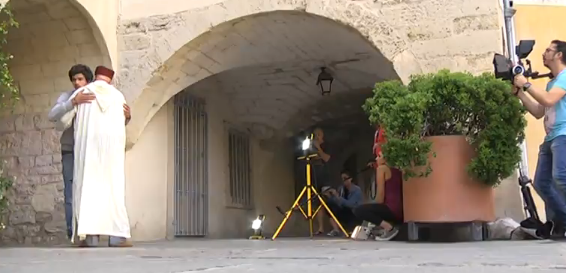 A Lunel, ville de l'Hérault où depuis 2014 une vingtaine de jeuns sont partis pour faire le Djihad en Syrie, la place Jean-Jaurès, a été transformée en décor de cinéma, ce lundi 29 mai, avec les jeunes lunellois en acteurs.