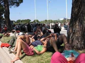 Les plus jeunes parmi ces naufragés des vacances s’arrangent quant à eux pour prendre les choses du bon côté, à l’image de ce groupe de lycéens et d’étudiants Belges revenus d’un séjour humanitaire à Ouagadougou (Burkina). Pour occuper le temps à attendre les bus, ils alternent parties de cartes et bains de soleil sur les maigres parcelles d’espaces verts.