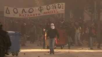 Plusieurs dizaines de jeunes ont envahi la place voisine de la tombe du soldat inconnu, en contrebas du parlement. Les forces anti-émeutes ont alors enchaîné les charges et tiré des gaz lacrymogènes pour les faire reculer. Les heurts se sont poursuivis pendant une dizaine de minutes, avant que le cortège ne s'éloigne vers l'université d'Athènes, à quelques centaines de mètres, où il s'est dispersé.