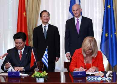 Les deux pays se fixent comme objectif de doubler leurs échanges commerciaux, d'ici 2015, Athènes et Pékin ont par ailleurs signé deux accords cadres, l'un porte sur le développement des investissements chinois en Grèce, l'autre sur les échanges culturels. Onze autres accords commerciaux privés ont été signés, notamment dans le secteur des transports.