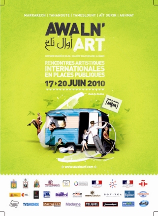 Du 17 au 20 juin 2010 les places publiques de Marrakech et de quatre villages de la province Al Haouz s’habillent de leur plus lumineux apparats pour accueillir la quatrième édition des Rencontres artistiques Internationales en Places publiques Awaln’art.