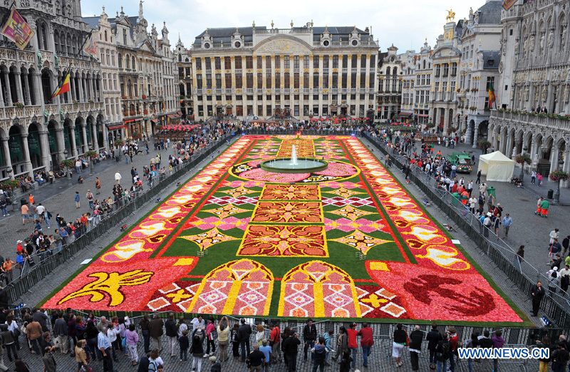 Exceptionnel et éphémère, un immense tableau de près de 20.000 m2 de bégonias s'est constitué sur  la Grand-Place de Bruxelles avec la collaboration d'une trentaine d'horticulteurs.