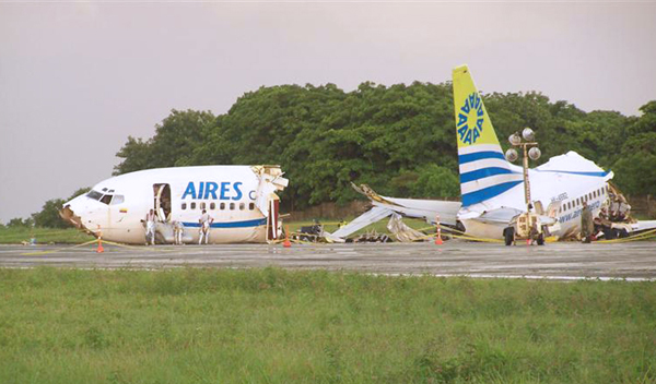 Le gouverneur de San Andres. Pedro Gallardo a indiqué que le le Boeing 737 a été atteint par un éclair alors qu'il atterissait, et s'est brisé en trois morceaux sur la piste d'atterissage.
